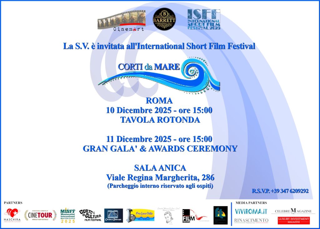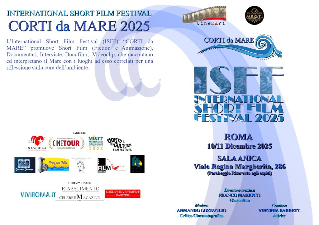 L’International Short Film Festival (ISFF) “CORTI da MARE” promuove Short Film (Fiction e Animazione), Documentari, Interviste, Docufilm, Videoclip, che raccontano ed interpretano il Mare con i luoghi ad esso correlati, e che conducano il pubblico ad una riflessione sulla cura dell’ambiente.